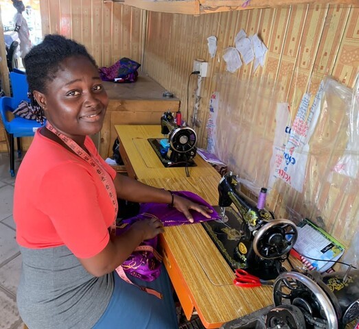 A beneficiary of the Sua Adepam Project working at her sewing station, demonstrating the programme’s focus on confidence-building and self-reliance.