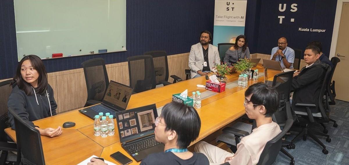 INTI Penang students present their AI-driven project, EAR-EYE, to judges during the 24-hour UST Global Hackathon (D3CODE 2025) held in Cyberjaya