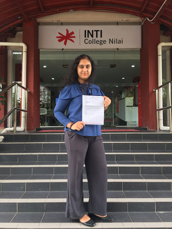 The 28-year-old local from Ipoh, Perak, received the letter of appreciation after being named by Liew Min, an INTI College Nilai (INTI) graduate, as a significant contributor to her development at INTI.
