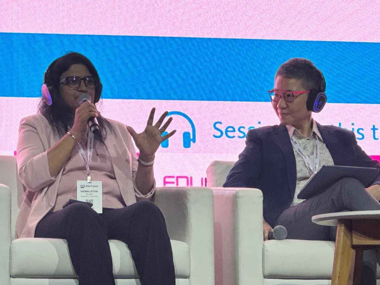 Hemalatha Murugiah, Chief Executive of INTI International College Penang, speaking on a panel at EDUtech Asia 2025, held at the Sands Expo & Convention Centre, Singapore.